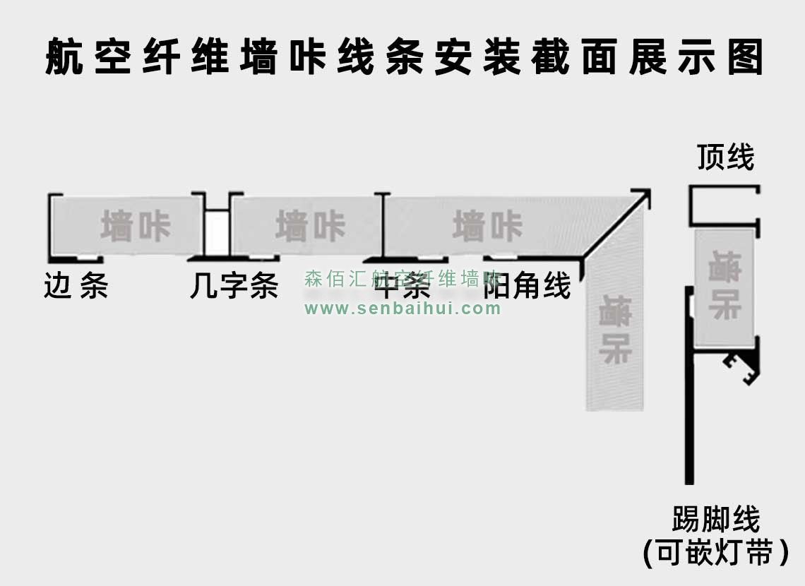 邢台航空纤维墙咔铝合金带灯中条(钛金氧化)